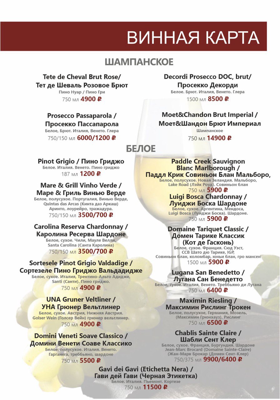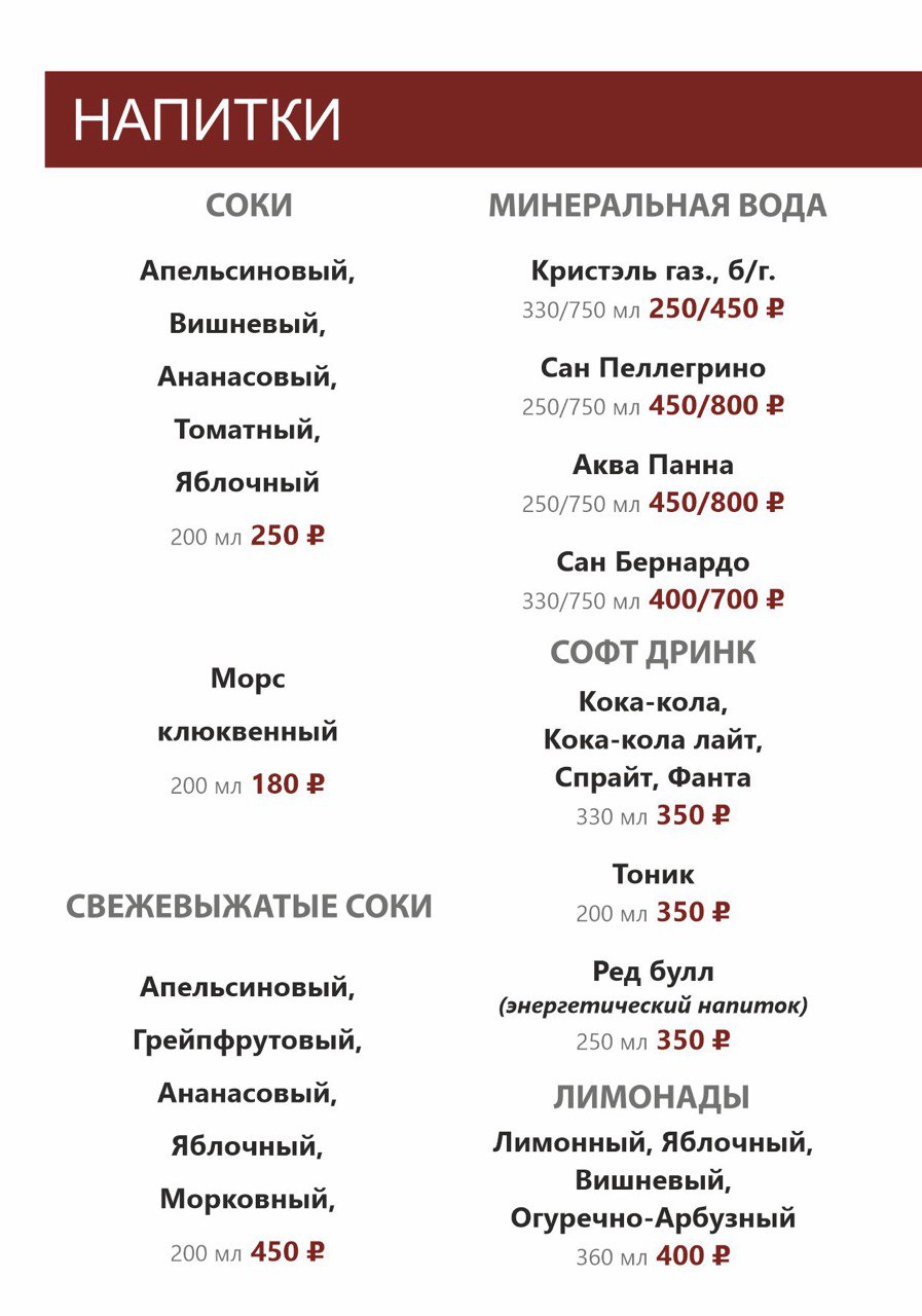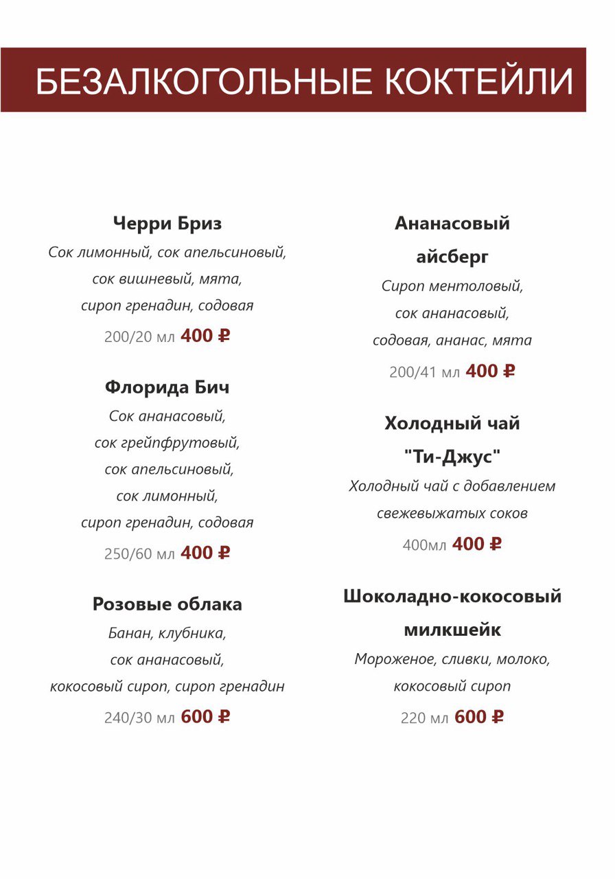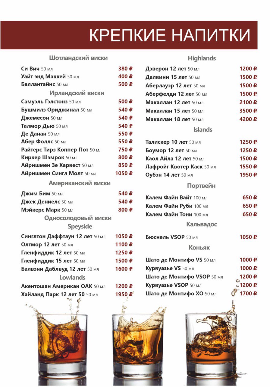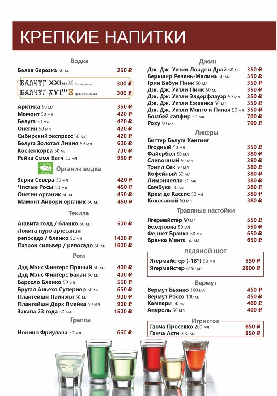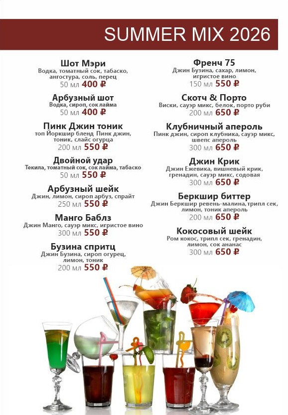БАРНОЕ МЕНЮ