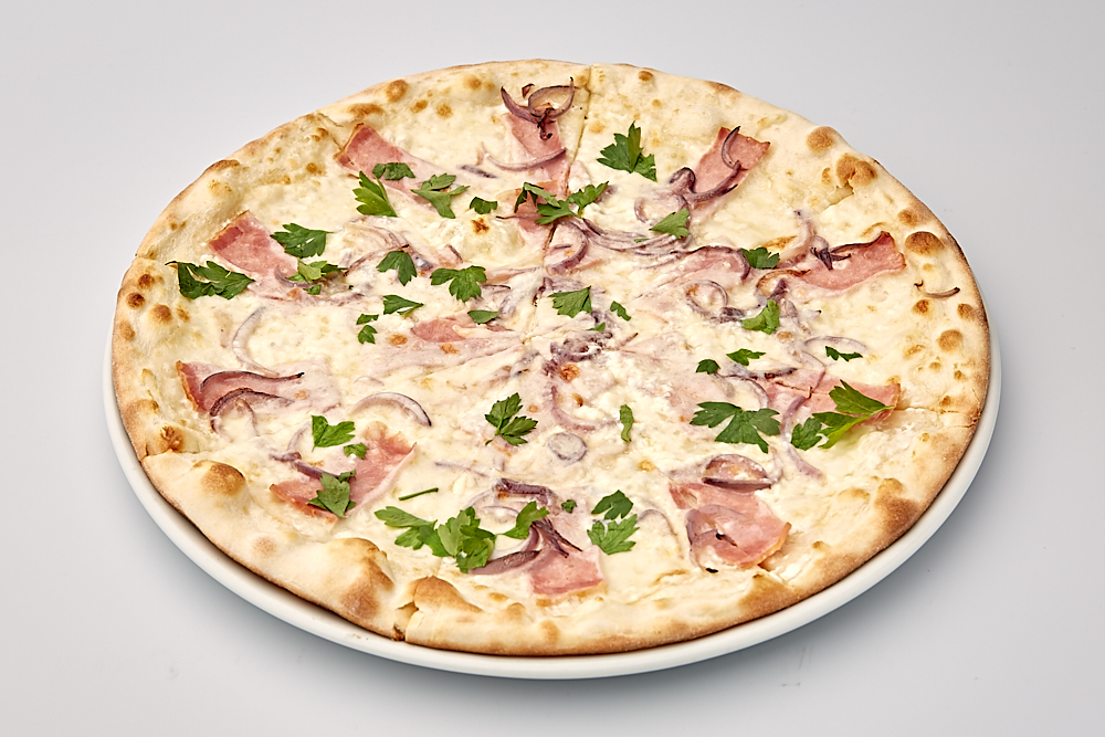 Сметана, бекон, лук, зелень, сыр Моцарелла