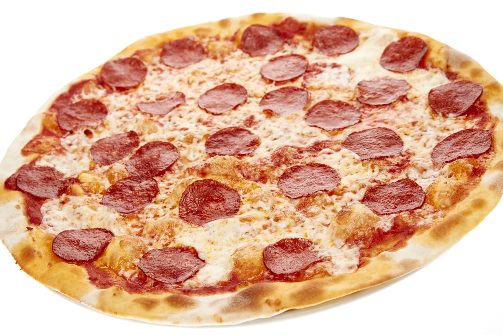 Сыр Моцарелла, томатный соус, салями-пелерони, орегано, оливковое масло