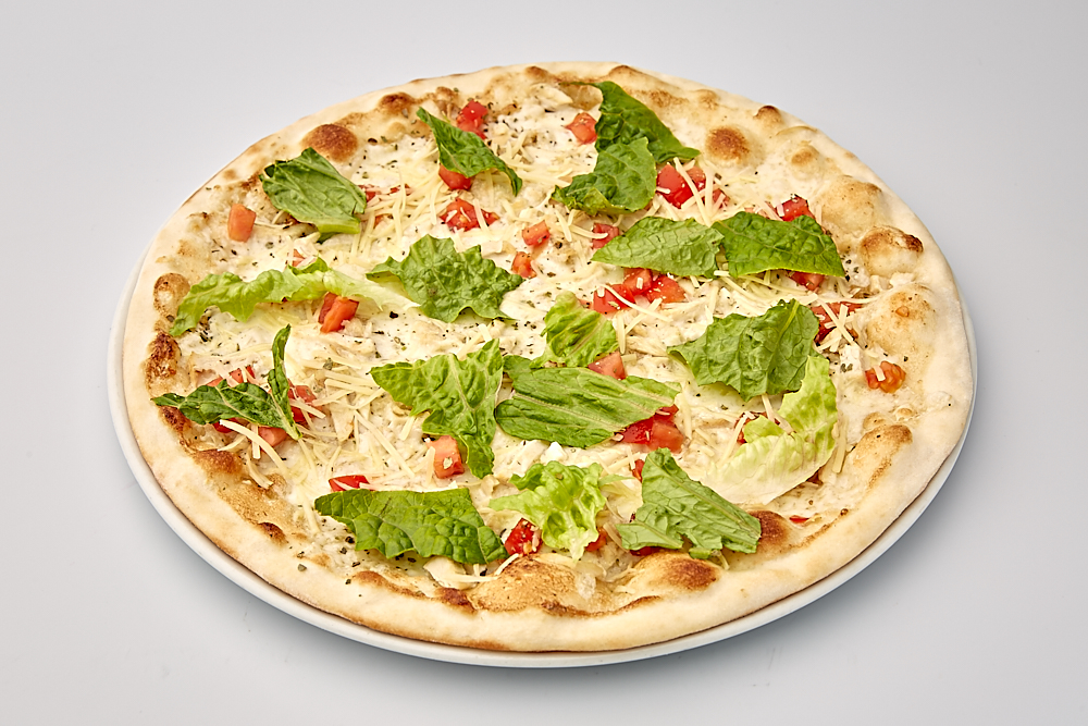 Соус Цезарь, сыр Моцарелла, куриное филе, сыр Пармезан, базилик