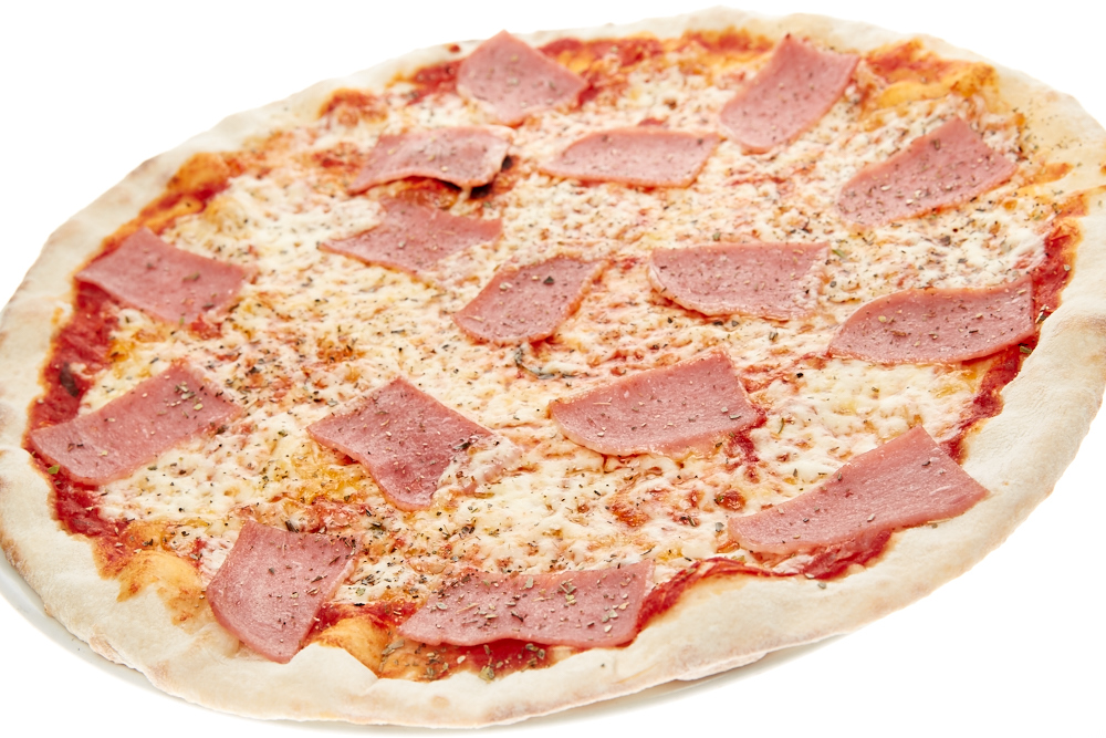Сыр Моцарелла, томатный соус, ветчина, шампиньоны, майоран, масло оливковое